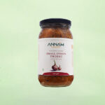 Annam Small Onion Thokku is a traditional Tamil-style relish made with handpicked small onions and aromatic spices. Prepared using time-tested recipes and slow-cooked to perfection, this thokku delivers bold, tangy, and deeply savoury flavours in every spoonful.